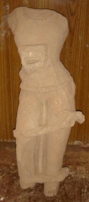 | Description / विवरण | Sculptured architectural fragment of a male figure in standing position. The head, arms and feet are missing. He is adorned with jewels and wearing a Yajnopavit . |