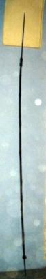 | Description / विवरण | Bamboo spear having long pointed head iron with flaring sides and iron budi at the bottom with a round ring. |