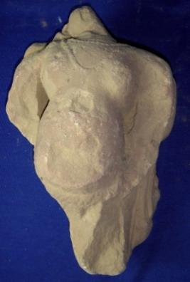 | Description / विवरण | Torso of a male. Its head, arms and leg are broken. He is adorned with 2 pearl necklaces and tussels of his drapery is seen on the left side. It is probably a Yaksha. |