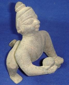 | Description / विवरण | Metal image of Laddu Gopal crawling with his knees and holding laddu in his right hand. Details of his eyes and jewels are depicted with incised lines. |