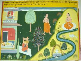 | Description / विवरण | Miniature painting based on Sarangatattva - an independent work of Sankhya school of philosophy. It the right, a king and queen are standing in palatial balcony. In lower part a female singer is playing veena. In the upper left part, a yogi is seen in standing and sitting positions. |
