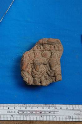 | Description / विवरण | Fragment from the front wall of a toy chariot showing figures of three bulls. |