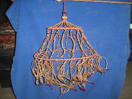 | Description / विवरण | It is a Chika. The jute threads are tied by cotton threads. Two rings are used made by chika and the upper part of the ring is 17 cm and bottom part ring is 33 cm. And all the threads are tied in a string. |