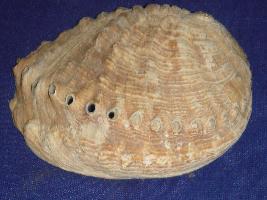 | Description / विवरण | Part of scallop having inner side is plain and outer side is oval in shape and rough, there are six incised holes on its body. |
