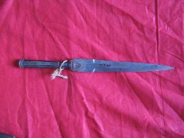 | Description / विवरण | This is a spear blade with rusted hilt. Its cover is made with leather. Human face is carved on the hilt. |