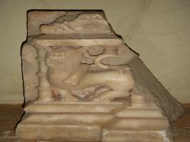 | Description / विवरण | Fragment of a sculpture, probably a part of the throne of a Jain Tirathankara where depiction of a lion figure is seen and one line of inscription written in Sanskrit language is also there. |