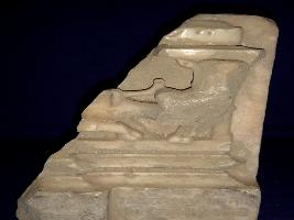 | Description / विवरण | Fragment of a sculpture depicting a mythical animal; the upper part of its body is mutilated. Below the figure inscription of two lines is written is Devnagri script in Sanskrit language. |