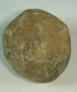 | Description / विवरण | Coarse terracotta perforated bead, betel nut in shape, with a slight depression on the centre of base. |