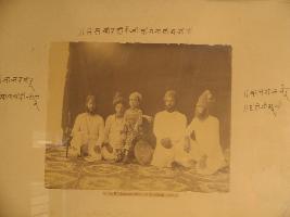 | Description / विवरण | H.H. in childhood seated on the chair wearing ornaments, both hands are on the sword. At his right, Najar Piru and Shabhai Bhanu are sitting on the ground while on the left side Raja Bahadur Singh ji is sitting. |