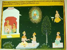 | Description / विवरण | Miniature painting based on Sarangatattva - an independent work of Sankhya school of philosophy. It describes that worldly desires create illusions among all the celestial and terrestrial being. It is an incomplete painting. |