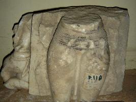 | Description / विवरण | Fragment of a sculpture depicting the lower part of a female, with only thigh portion is visible. There is an elephant head towards the right of the image. Most probably it is a part of a panel. The lower portion of this sculpture is under accession no. P117. |