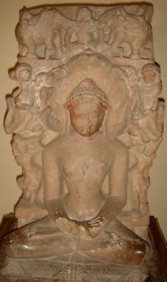 | Description / विवरण | Independent sculpture of Parswanath, seated in Dhyanamudra. His palm and left knee are chopped off. He is flanked by two chauri bearers on either side. Two garland bearers are depicted over the snake hood and two elephants with riders are depicted on top of the image. |