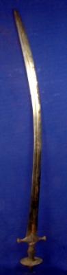 | Description / विवरण | Sword, with slightly curved blade groove. The hilt is having koft work. |