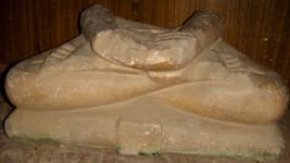 | Description / विवरण | Independent sculpture of Parswanath in seated position. Upper portion of the body is missing, only legs and part of hands are there. On the pedestal, inscription and a snake are there. |