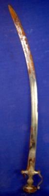 | Description / विवरण | Iron Sword having curved blade with a groove nali and hilt with knuckle guard middle part of the hilt has ridges. It is rusted. |