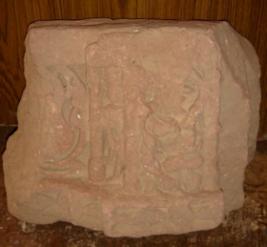 | Description / विवरण | Architectural fragment depicting Parvati with child seated is lalitasana. The head of Parvati is chopped off. Below Parvati her vahan Nandi is seen. To her right a male attendant is seen is pillared niche and next to him some architectural designs are seen. |