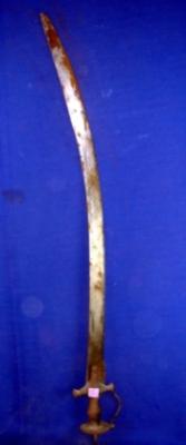 | Description / विवरण | Iron sword having curved blade and hilt with knuckle guard todedar . It is rusted. |