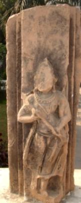 | Description / विवरण | Independent sculpture of Ram in standing position. His face, right leg and feet are chopped off. He is holding an arrow with his both hands and the bow is hanging on his shoulder. Both bow and arrow are mutilated. |