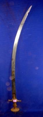 | Description / विवरण | Iron sword having curved blade and hilt with floral design rubbed out . The hilt is rusted. |