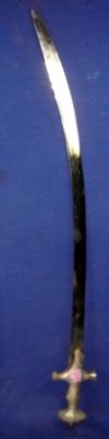 | Description / विवरण | Sword having curved steel blade with grooves nali and plain iron hilt. |