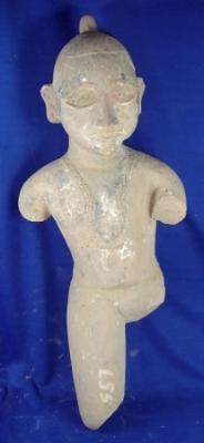 | Description / विवरण | An independent image of a saint, arms and legs are broken. He is wearing garland and Ushnish is visible. |