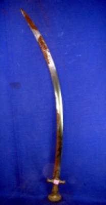 | Description / विवरण | Iron sword with slightly curved blade and simple Alamgiri hilt. The blade is rusted. |