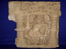 | Description / विवरण | An independent sculpture of a male attendant, standing in tribhanga posture. The right hand holding a sword pointing upward and the left hand close against the left leg. He is standing is a pillared niche. The upper part of panel is decorated with vegetational motifs. |