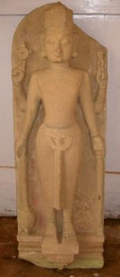 | Description / विवरण | An independent image of 4 armed Satya Narayan Vishnu in standing pose. Attributes from right below i Mace ii Chakra iii conch iv staff. He is wearing a wooden sleeper. |