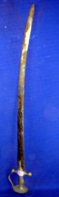 | Description / विवरण | Iron Sword having curved blade and hilt with knuckle guard todedar . The blade is rusted. |