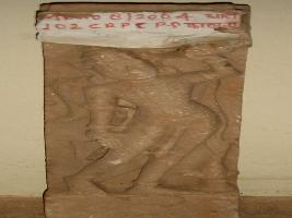 | Description / विवरण | An independent sculpture of a male chanwari bearer in standing position holding a chanwari in his left hand, while his right hand rests on his thigh. He is adorned with garland bangles, armlets, anklets, crown and wearing a sangati. A purna ghat is seen below his feet. |