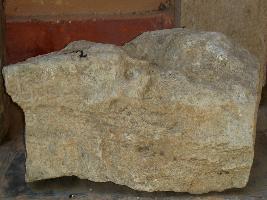 | Description / विवरण | Lower portion of pillar, with epigraph at the top, containing four lines, of whose 1st line is broken. At the lower part, some design are there which is rubbed off. It is part of another pillar fragment displayed with accession no-129 1. |