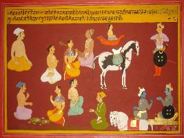 | Description / विवरण | Miniature painting based on Shri Bhagwat Gita. It depicts Krishna preaching Arjun that everybody in war is fighting to fulfil their karma duty . Their karma is like Indra s karma, look at them they are filled with Ahankar proud . |