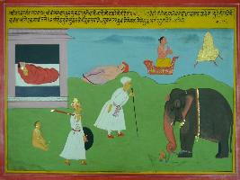 | Description / विवरण | Miniature painting based on Shri Bhagwat Gita. It depicts the scene from holy Gita. That from men to animal everybody is in chain. |