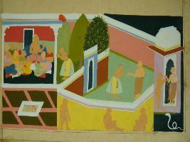 | Description / विवरण | Miniature painting based on Ramayana depicting Sugriv s court and palace. It is an incomplete painting. |