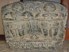 | Description / विवरण | Sati stone inscription with an epigraph having three and a half lines in Devnagri script. Above this a male and female figure standing with folded hand is depicted in high relief. They are ornamented with head gear, kundala, armlet ridge band and girdle where tussle are also seen. |