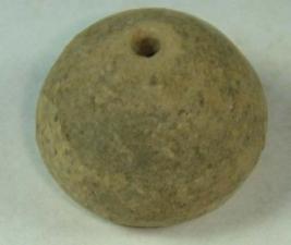 | Description / विवरण | Perforated terracotta bead having betel nut shape, surface is rough with earthen incrustation. |