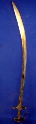 | Description / विवरण | Iron sword having curved blade and plain Alamgiri hilt. It is badly rusted. |