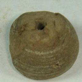| Description / विवरण | Perforated terracotta bead, betel nut in shape and striation lines, broken from the top. |