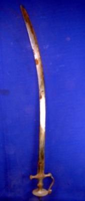 | Description / विवरण | Iron sword having slightly curved blade and hilt with knuckle guard todedar . It is largely rusted. |
