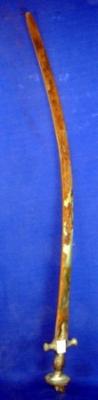| Description / विवरण | Iron sword having curved blade and hilt without any decoration. It is rusted. |