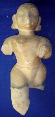 | Description / विवरण | Independent sculpture of Shri Krishna having knotted hair. The hands and legs are chopped off. There are two incised holes on the ears. |