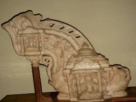 | Description / विवरण | Fragment of a Toran gateway with the depiction a Jain Tirathankara in Dhayana mudra, two Jain monks are standing just behind of him. Four Gandharvas are there with another Jain Tirathankara in the upper side of the sculpture, in sitting posture. Two jina also are there, that beautifully designed in both side of the main Tirathankara. |