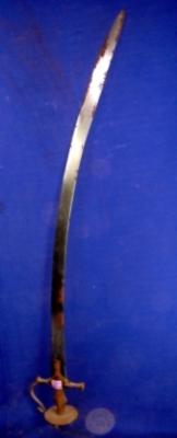 | Description / विवरण | Iron sword having slightly curved blade and hilt with knuckle guard todedar . It is rusted. |