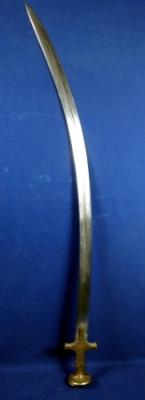 | Description / विवरण | Sword having curved Sakela blade with grooves at both sides and iron Alamgiri hilt with embossed golden floral work. |