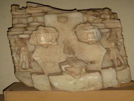 | Description / विवरण | A sculptured architectural fragment, probably a part of a pillar, the deity in centre has been totally mutilated and nothing ca be identified. In right corner, a standing female is depicted, on top left, there is depiction of Jina in Dhayana mudra, a female attendant is sitting on right of jina image, on left of the jina there is depiction of standing female. |
