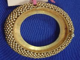 | Description / विवरण | A gold plated, silver bangle with applique beaded design on outer rim. The inner rim is flat and it was used to be worn by women. |