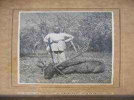 | Description / विवरण | It is a black and white photograph of M. Ganga Singh ji with shooted Sambhar. M. Ganga Singh ji is holding double barrel gun in his arm standing with shot sambhar. |
