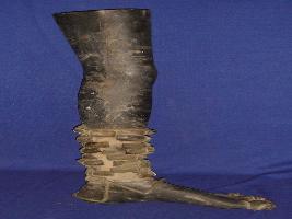 | Description / विवरण | Ten bangles made of brass, each bangle having incised dots design on the outer rim of the bangle. Beside it, there is an anklet which has geometrical designs. Some rings are fixed in the finger. All these items are fixed in a leg of a man. |