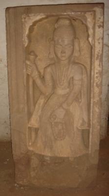 | Description / विवरण | An independent image of a standing male, probably folk deity. He is ornamented, wearing a turban and long Jama which is decorated with incised lines. He is holding a stick in right hand and a club in left hand. |