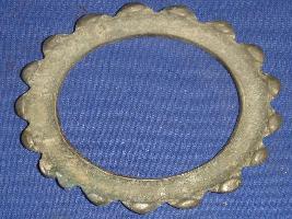 | Description / विवरण | Iron bangle, round in shape. There are some protruding designs on the outer rim of the bangle. |
